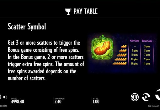 Ігровий апарат Pink Elephants, розроблений компанією Thunderkick, присвячений тваринам. Головною особливістю автомата є наявність 6 барабанів і 4096 ліній, що забезпечує регулярне виведення реальних грошей. Також цьому сприятимуть фріспіни і особливі знаки.